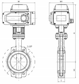 1.襯氟電動蝶閥安裝尺寸圖表