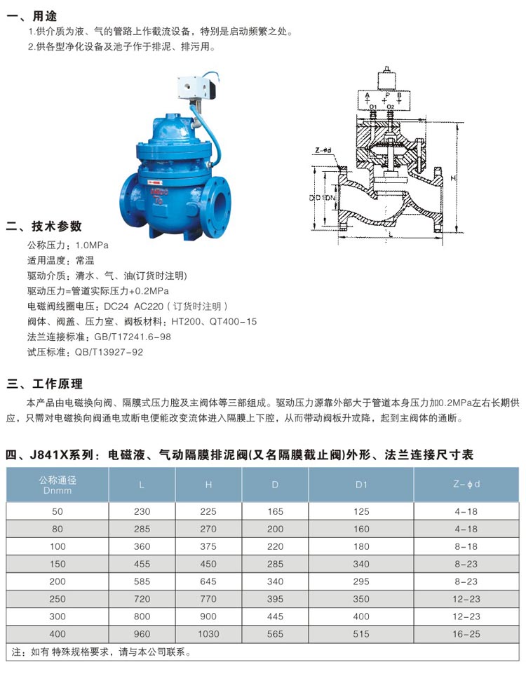 J841X系列電磁液(氣)動隔膜排泥閥
