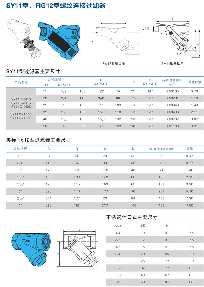 SY11型、FIG12型螺紋連接過(guò)濾器