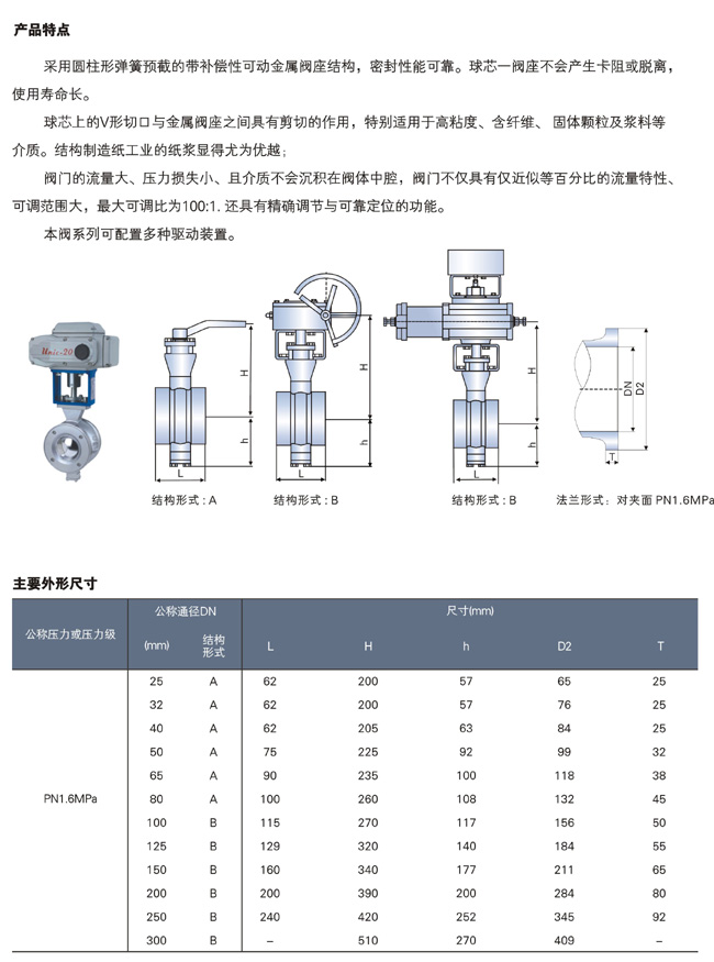 對夾V型球閥是球閥的一種,它的關閉件是半球體上開有V字型開口,V型開口具有鋒利的刃口,在球體回轉過程中,關閉件之間有擦拭作用,對介質具有強有力的切斷力,球體的V型開口與閥座流道形成一個扇形區域,在回轉過程中可改變流道截面積,形成對介質的精確調節,它是一種角回轉的調節閥,其密封性能與普通球閥相同,使它同時具備調節和開關兩種功能,與氣動或電動執行器配套,廣泛使用于工業過程自控系統中。產品特點: