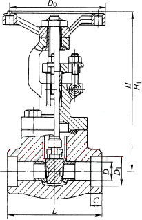 Z61H、Z61Y、Z61W 型 PN100~PN160 承插焊楔式閘閥主要外形及結構尺寸(mm)| DN | L | D | D1 | C | H | H1 | D0 | 重量/kg |